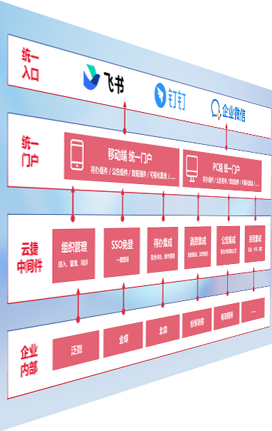 对协作平台提供支持服务,,支持企业应用与协作平台对接,,,,包含组织同步、、、、消息集成、、待办集成等。。。。支持目前主流的协作平台:钉钉、、、、企微和飞书。。。。